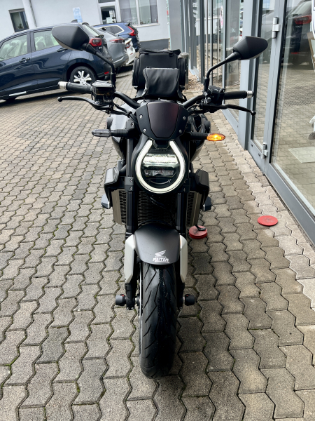 Naked Bike - GebrauchtfahrzeugHonda CB 1000R Black Edition1.950 km 107 kW (145 PS) Anzahl der Fahrzeughalter: 2 Benzin EZ 12/2023 HU neu Hubraum: 998 cm³ Schaltgetriebe Schwarz ABS, Elektrostarter, HU neu, Katalysator, LED-Scheinwerfer, Scheckheftgepflegt, Traktionskontrolle Zubehör: HONDA Original Griffheizung, Soziustasche, Tanktasche, Griffenden, Kühlergrill, Alu Fender Verkleidung & SW Motech Sturzpads. Irrtümer, Änderungen und Zwischenverkauf vorbehaltlich und ohne Gewähr!
