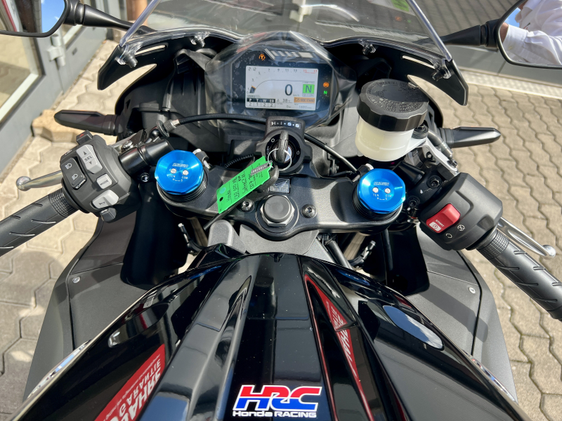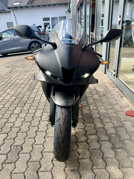 Sportler/Supersportler - NeufahrzeugHonda CBR600RR1 km 89 kW (121 PS) Benzin Hubraum: 599 cm³ Schaltgetriebe Schwarz · Elektronik mit Gyro Sensor und Kurven-ABS · Quickshifter · 3 Fahrmodi und 2 individualisierbare User-Modi · 9-stufige Traktionskontrolle 3-stufige Wheelie-Control Neufahrzeug HONDA CBR 600RR in Matt Ballistic Black. Irrtümer, Änderungen und Zwischenverkauf vorbehaltlich und ohne Gewähr!
