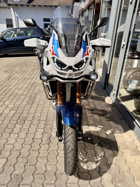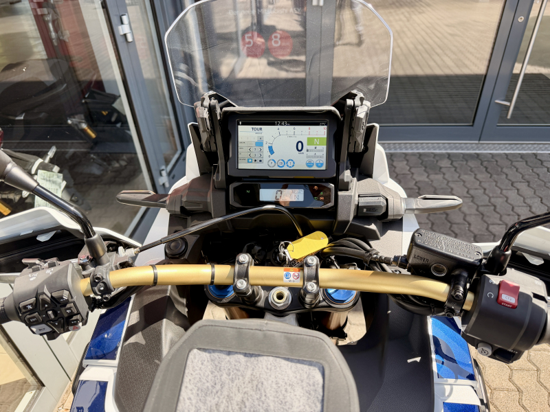 Enduro/Reiseenduro - GebrauchtfahrzeugHonda CRF1100L Africa Twin Adventure Sports ES 2023577 km 75 kW (102 PS) Antriebsart: Kette Anzahl der Fahrzeughalter: 1 Benzin EZ 12/2023 Elektrostarter HU neu Hubraum: 1084 cm³ Schaltgetriebe Weiß (Metallic) ABS, Elektrostarter, HU neu, Katalysator, Koffer, LED-Scheinwerfer, Metallic, Sturzbügel, Tempomat, Traktionskontrolle, USB HONDA CRF 1100L Africa Twin Adventure Sports mit E-Fahrwerk. HONDA Original Zubehör: Adventure Pack, Urban Pack, Raylly Fussrasten. Irrtümer, Änderungen und Zwischenverkauf vorbehaltlich und ohne Gewähr! Alle Angaben zum Fahrzeug entnehmen Sie bitte der Anzeige. Bei weiteren Fragen bitten wir um telefonischen Kontakt unter 06835 500600. Aktuell keine Inzahlungnahme möglich!